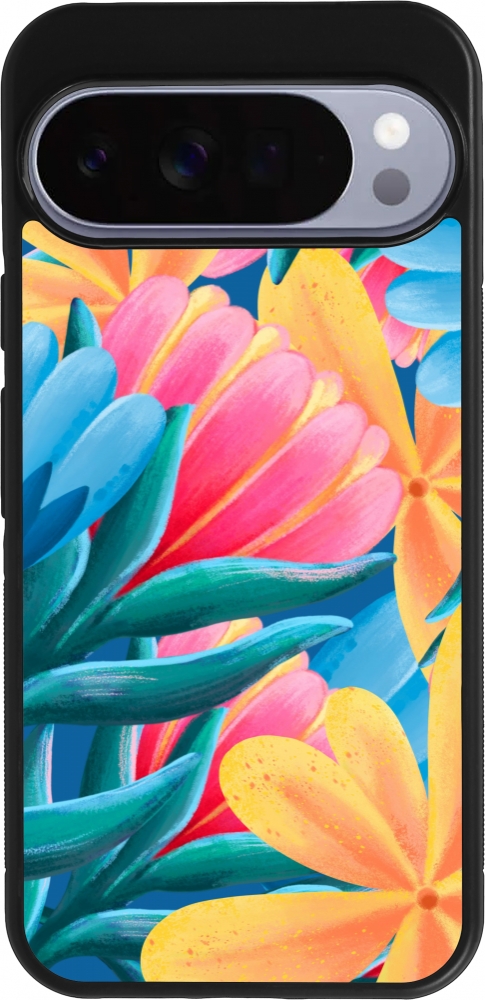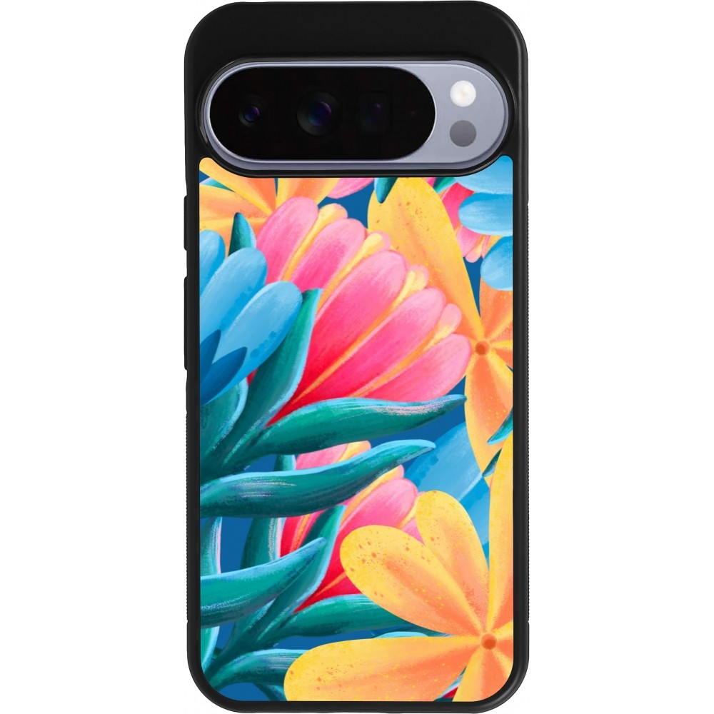 Coque Google Pixel 10 Pro XL - Silicone rigide noir Spring 23 colorful flowers