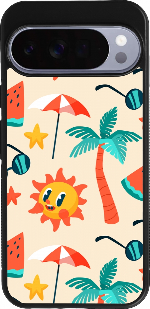 Coque Google Pixel 10 Pro XL - Silicone rigide noir Summer 2025 Pattern soleil
