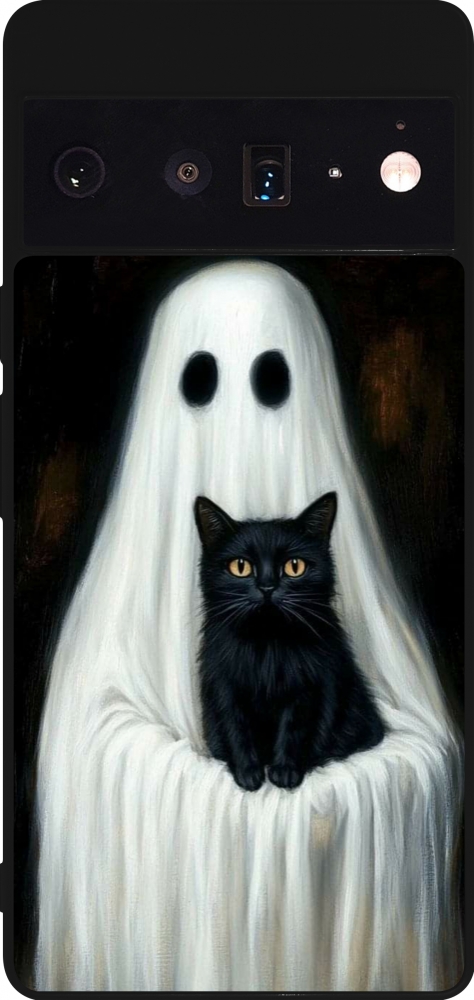 Coque Google Pixel 6 Pro - Silicone rigide noir Halloween 2025 Ghost with black cat
