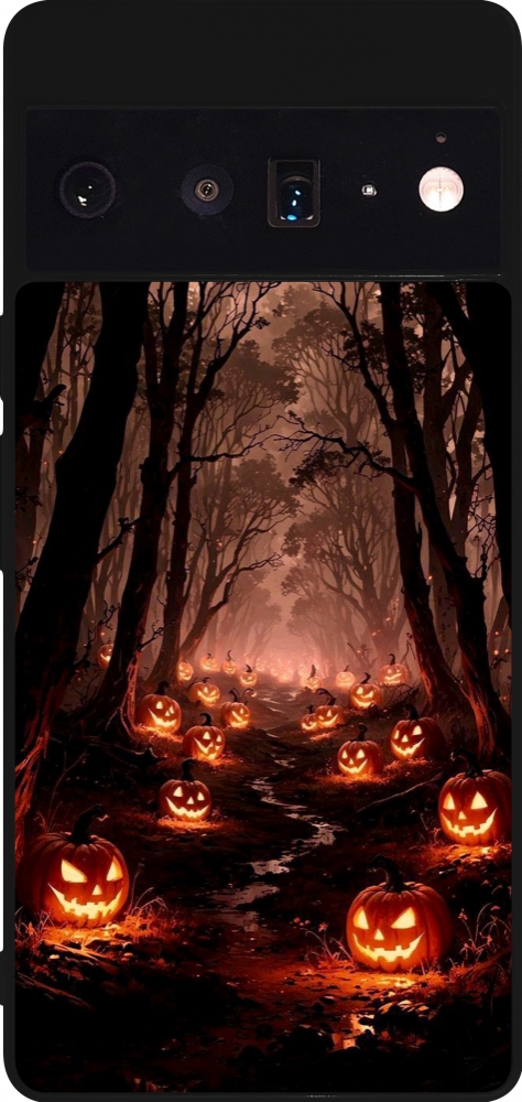 Coque Google Pixel 6 Pro - Silicone rigide noir Halloween 2025 Road of Terrifying Pumpkins