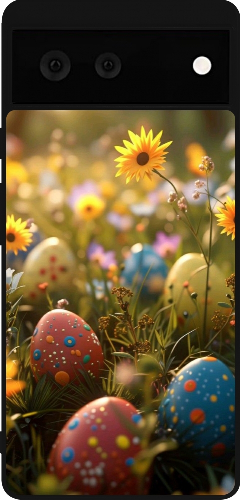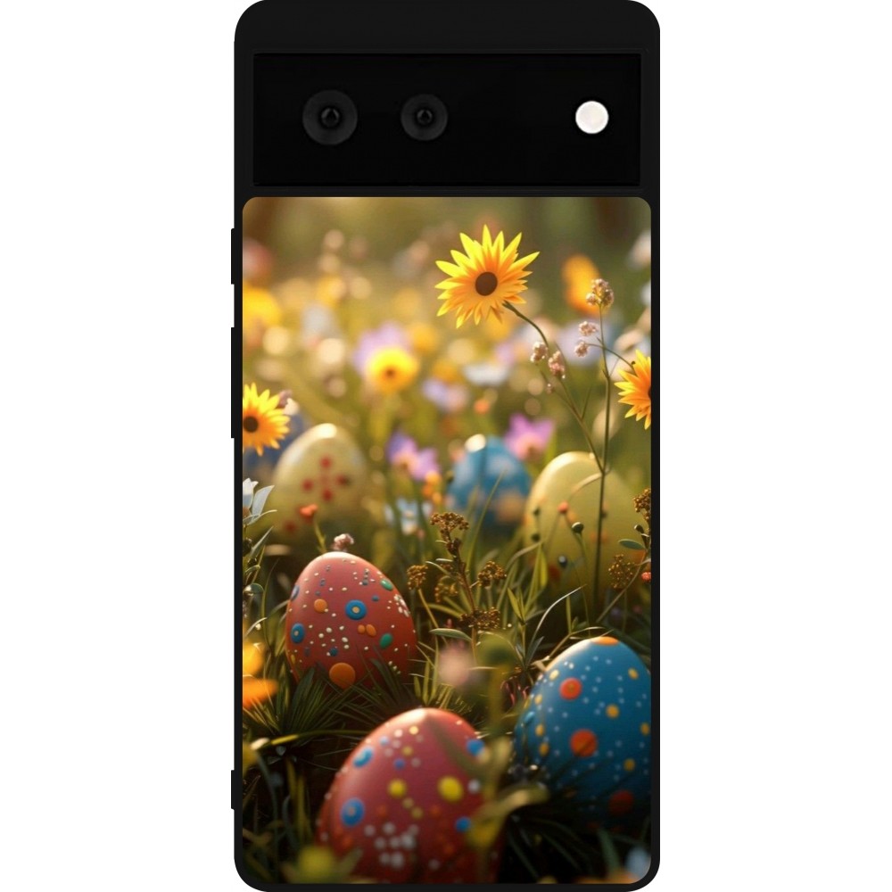 Coque Google Pixel 6 - Silicone rigide noir Easter 2026 Decorated eggs