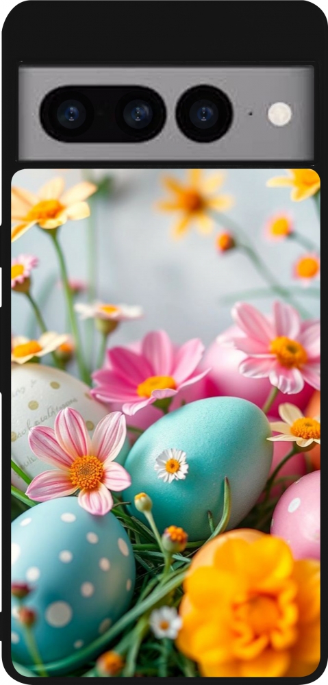 Coque Google Pixel 7 Pro - Silicone rigide noir Easter 2026 Eggs with flowers