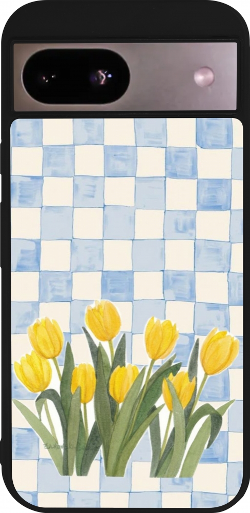 Coque Google Pixel 8a - Silicone rigide noir Blue vichy tulips 2026