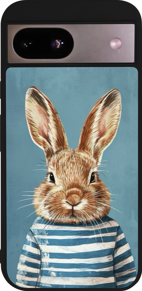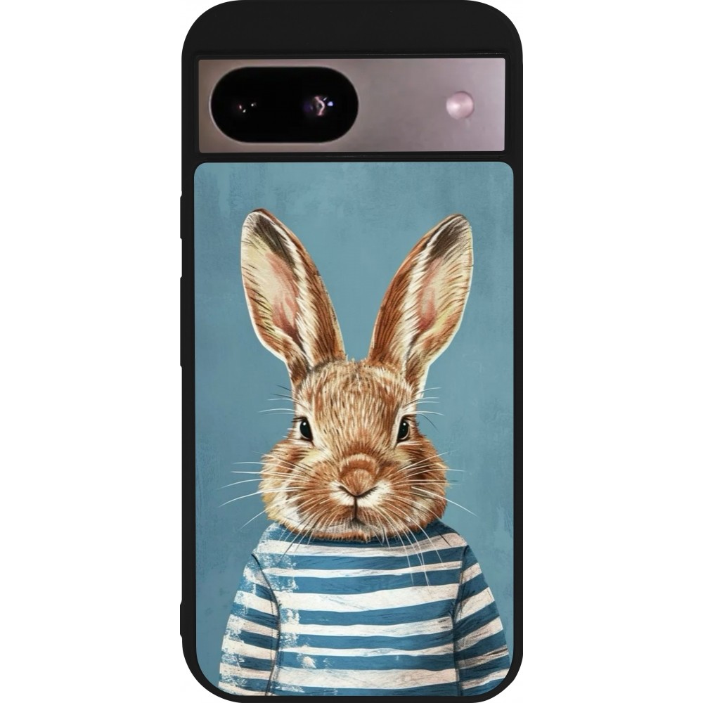 Coque Google Pixel 8a - Silicone rigide noir Easter 2026 Rabbit navy