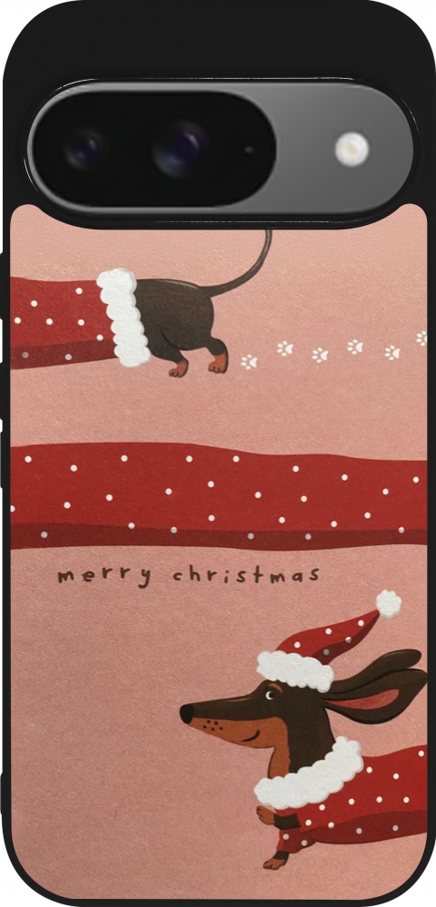 Coque Google Pixel 9 / Pixel 9 Pro - Silicone rigide noir Christmas 25 Teckel Merry Xmas