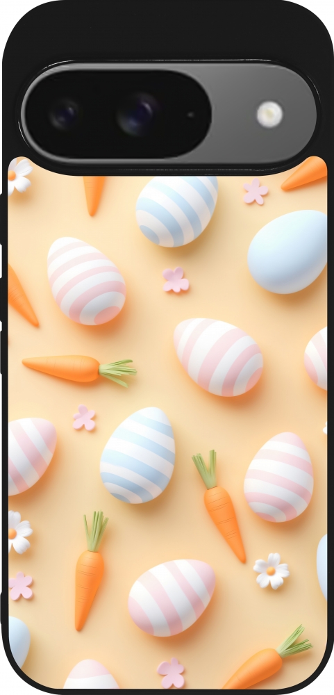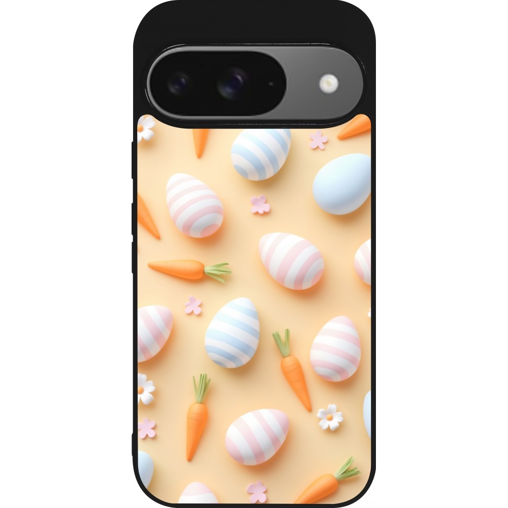 Coque Google Pixel 9 / Pixel 9 Pro - Silicone rigide noir Easter 2026 Pattern Easter