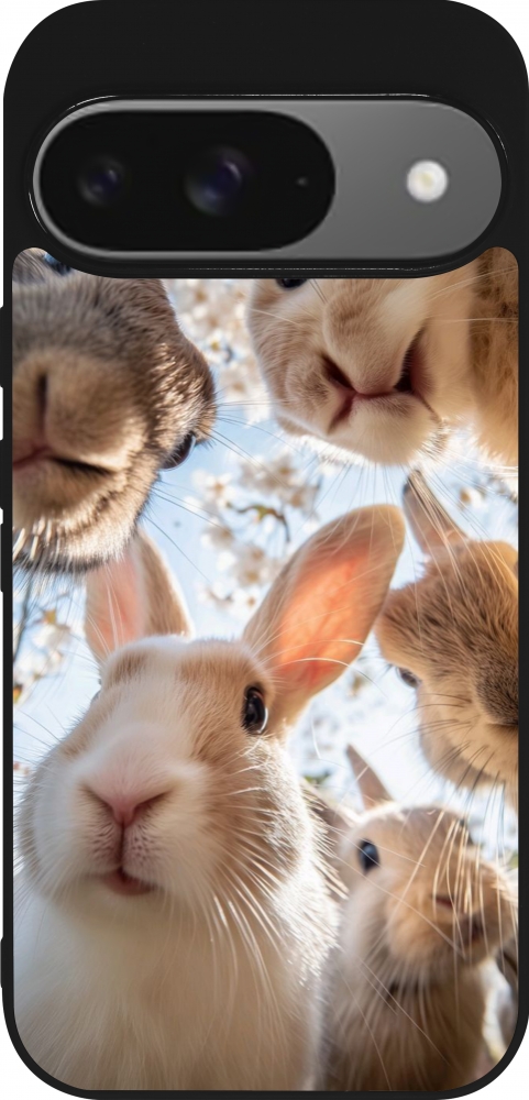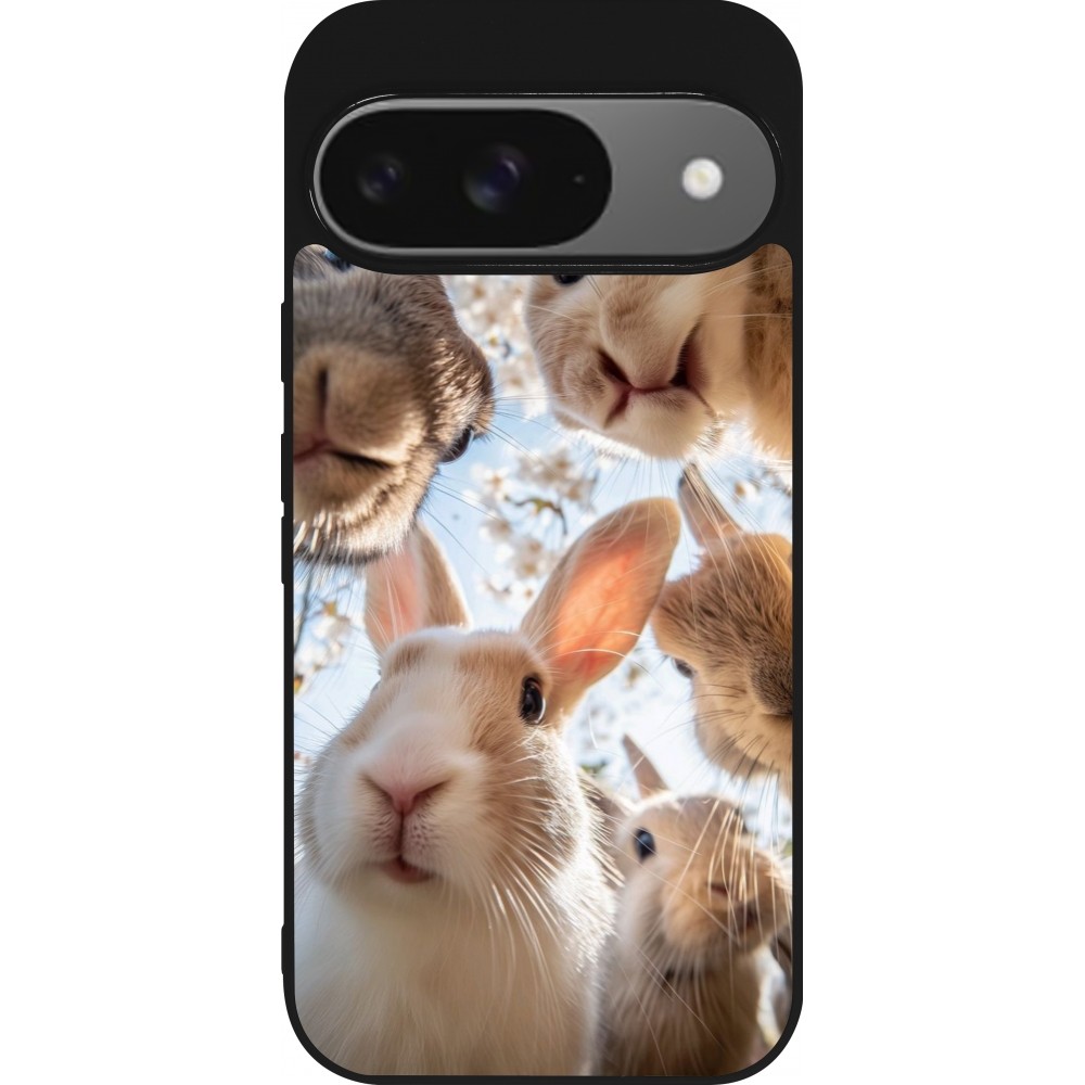 Coque Google Pixel 9 / Pixel 9 Pro - Silicone rigide noir Easter 2026 Rabbits
