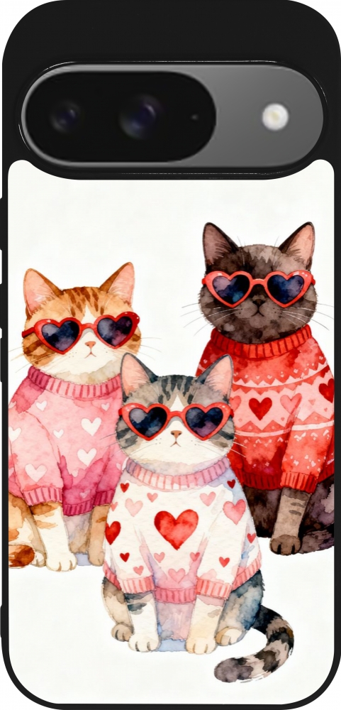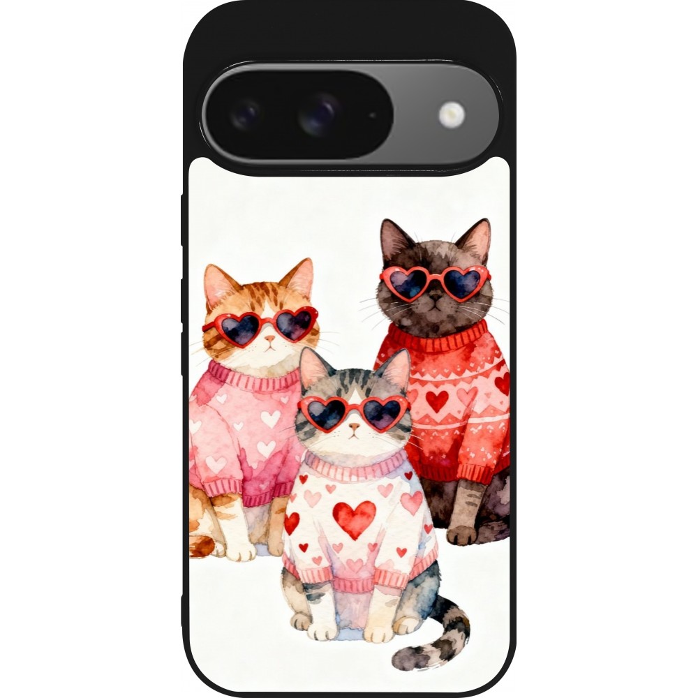 Coque Google Pixel 9 / Pixel 9 Pro - Silicone rigide noir Saint Valentines Day 26 Cat Love