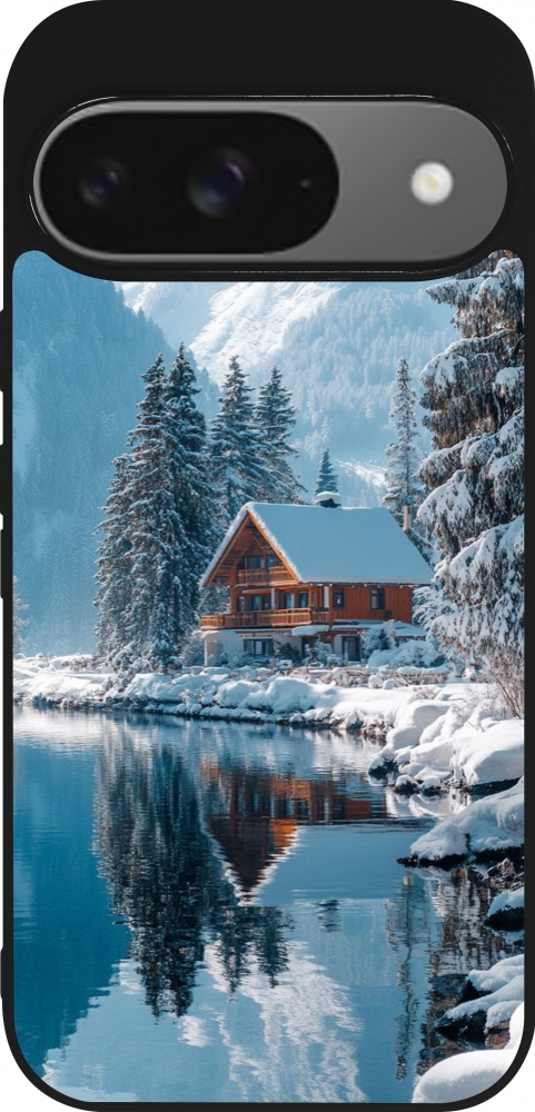 Coque Google Pixel 9 / Pixel 9 Pro - Silicone rigide noir Winter 25 Winter house forest day