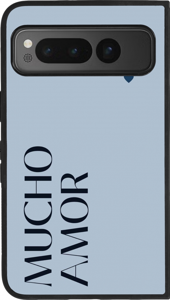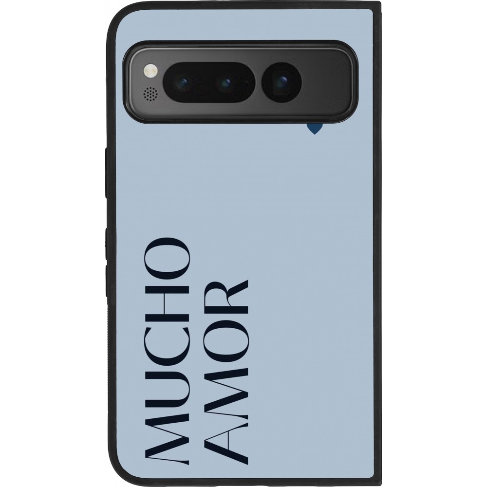 Coque Google Pixel Fold - Silicone rigide noir Valentine 2024 mucho amor azul