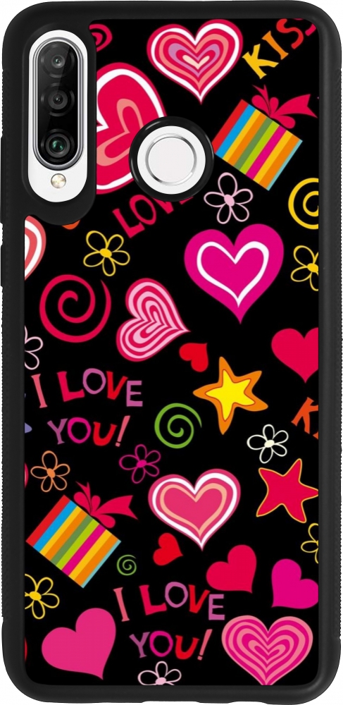 Coque Huawei P30 Lite - Silicone rigide noir Valentine 2023 love symbols