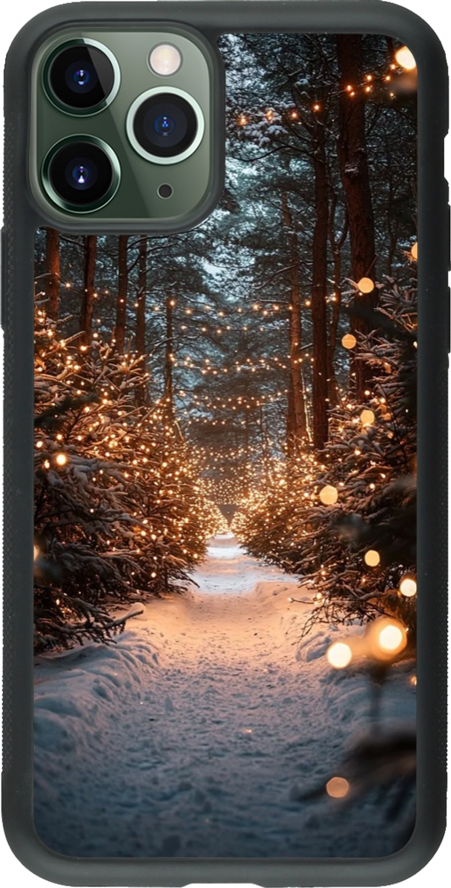 Coque iPhone 11 Pro - Silicone rigide noir Winter 25 Winter snowy road