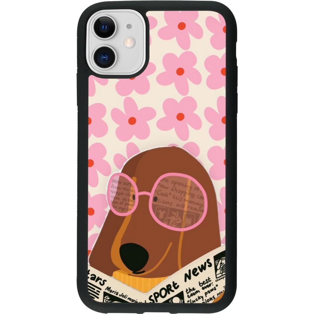 Coque iPhone 11 - Silicone rigide noir Dog with newspaper 2026