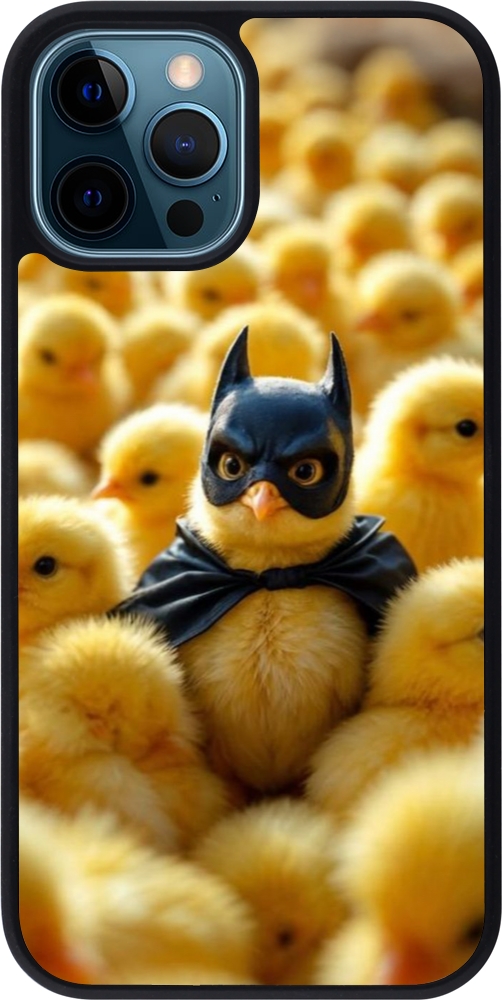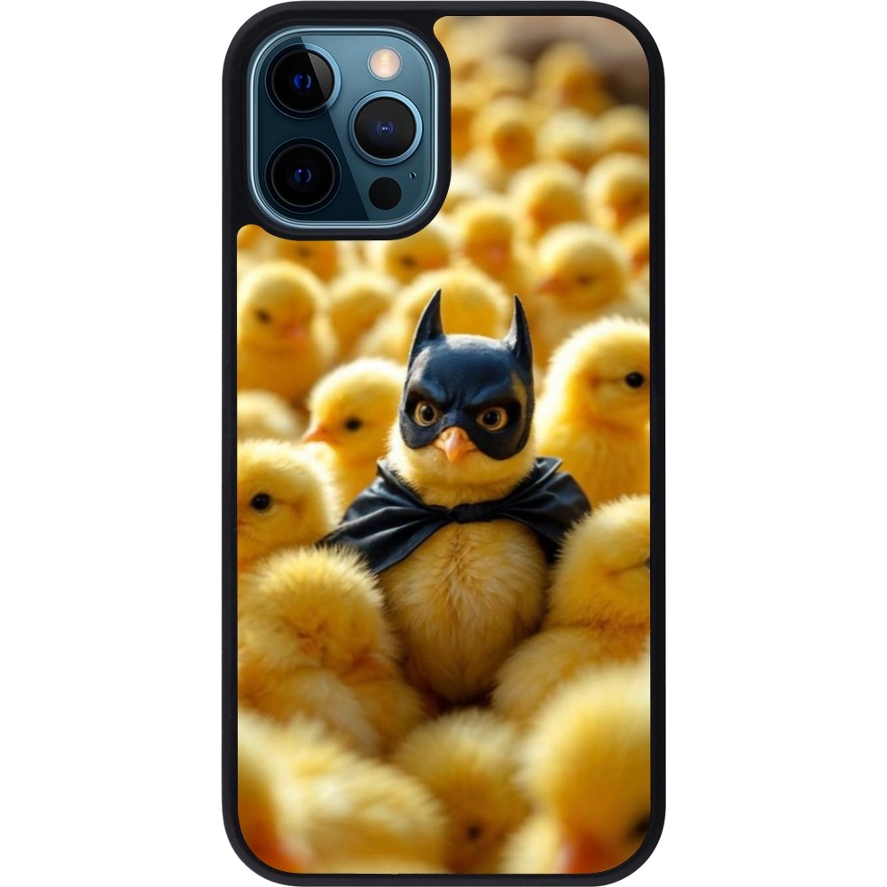Coque iPhone 12 / 12 Pro - Silicone rigide noir Easter 2026 Chicken Batman