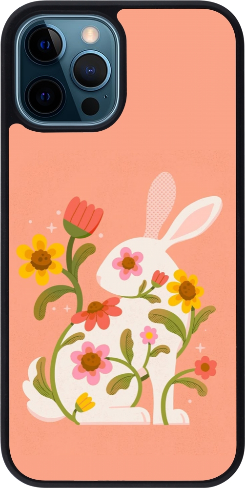 Coque iPhone 12 / 12 Pro - Silicone rigide noir Easter 2026 Rabbit collage