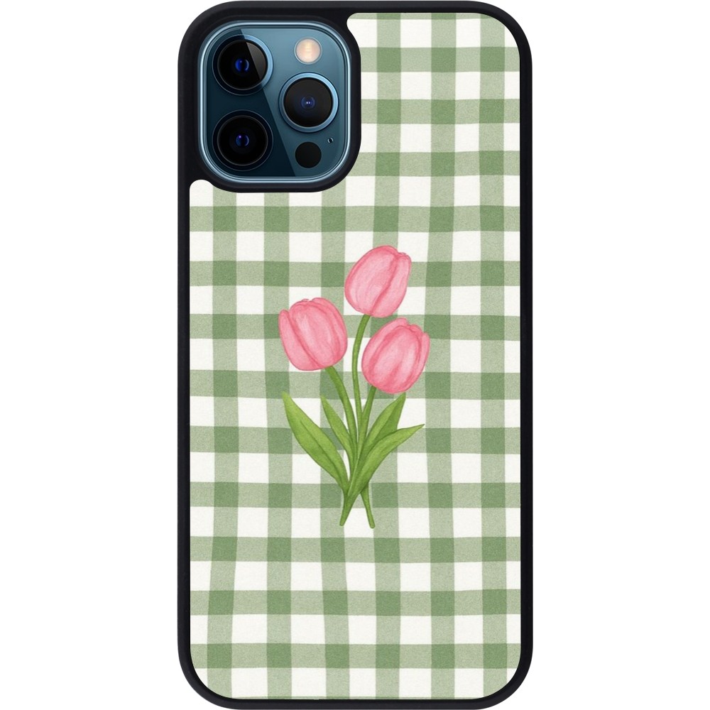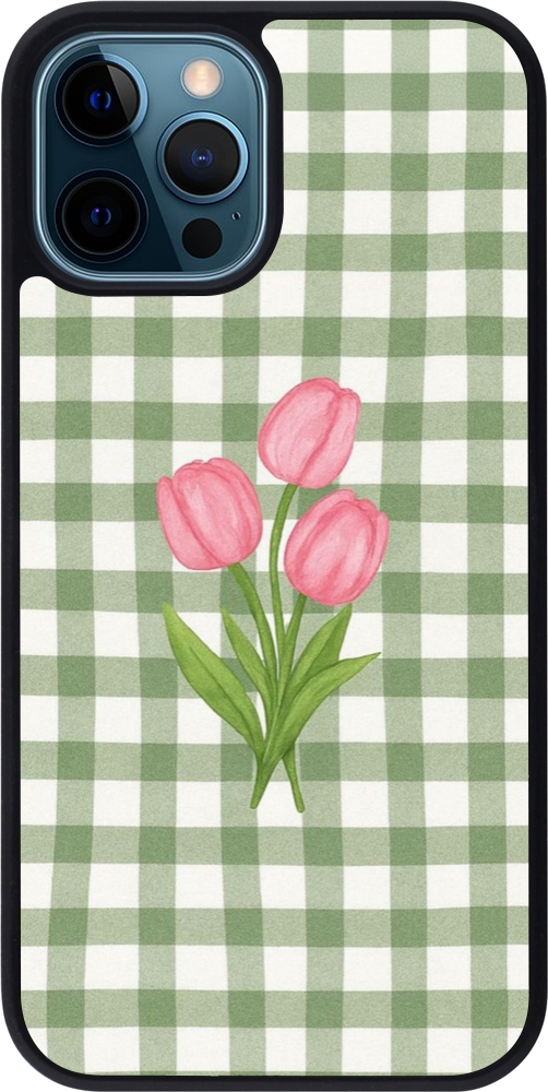 Coque iPhone 12 / 12 Pro - Silicone rigide noir Green vichy tulips 2026