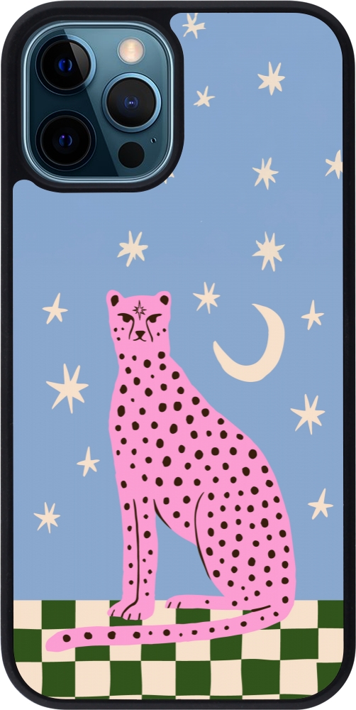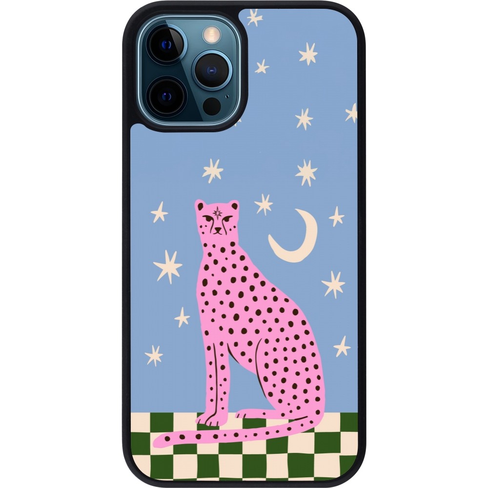 Coque iPhone 12 / 12 Pro - Silicone rigide noir Pink leopard with stars 2026