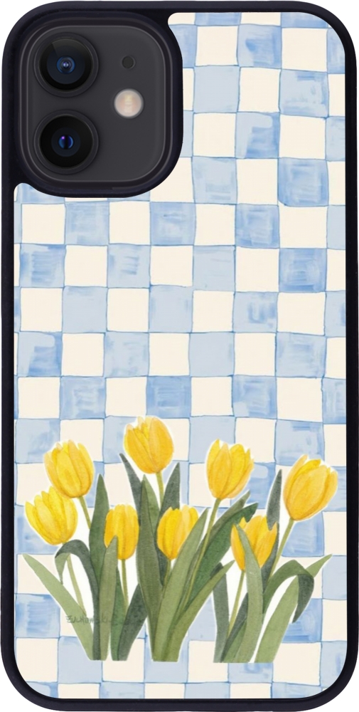 Coque iPhone 12 mini - Silicone rigide noir Blue vichy tulips 2026