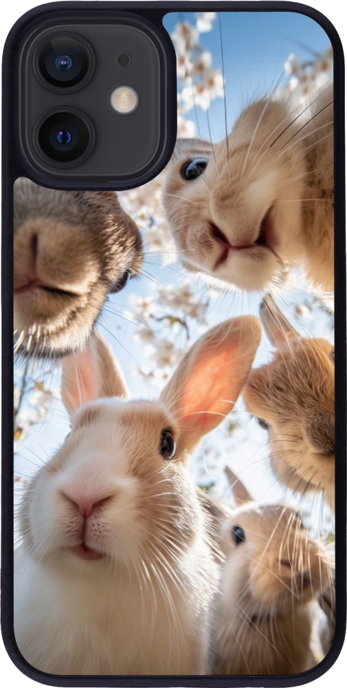 Coque iPhone 12 mini - Silicone rigide noir Easter 2026 Rabbits
