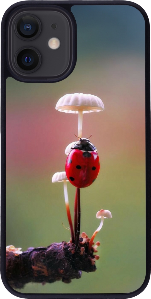 Coque iPhone 12 mini - Silicone rigide noir Ladybird on a mushroom 2026