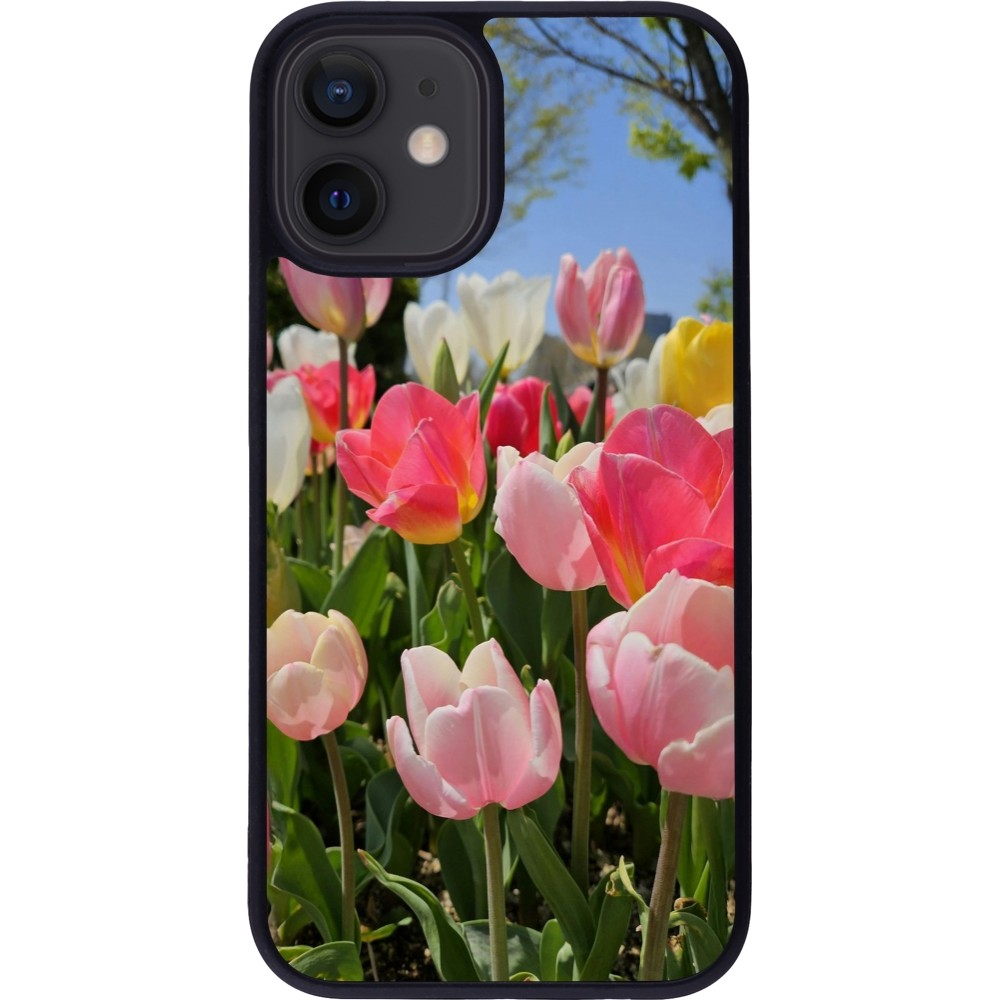 Coque iPhone 12 mini - Silicone rigide noir Tulips 2026
