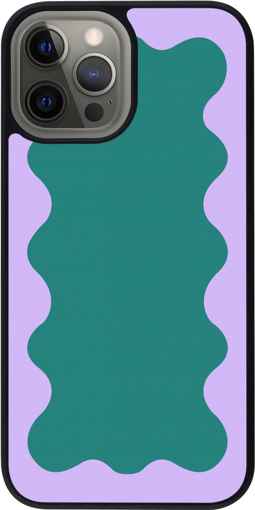 Coque iPhone 12 Pro Max - Silicone rigide noir Wavy Rectangle Green Purple