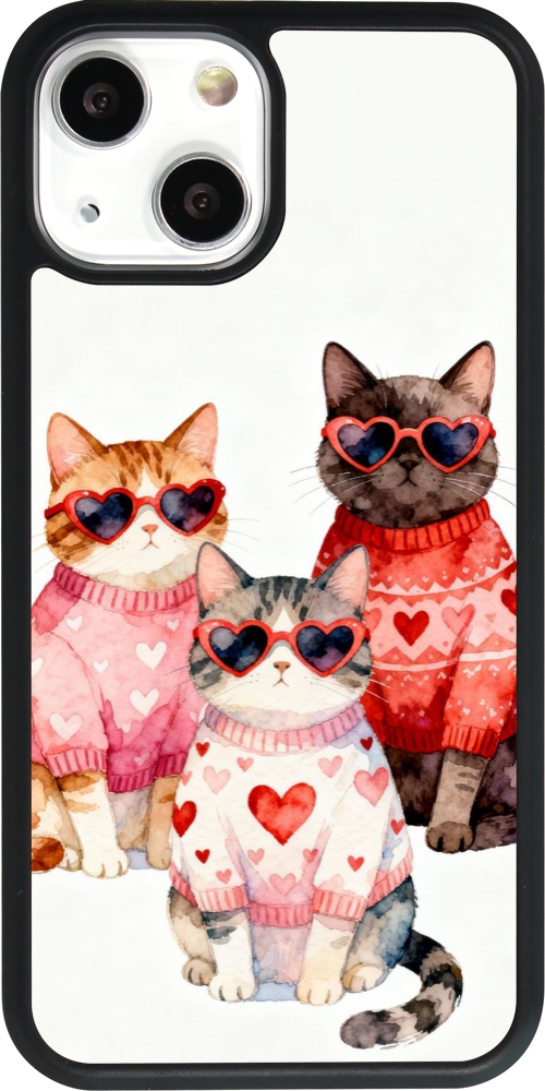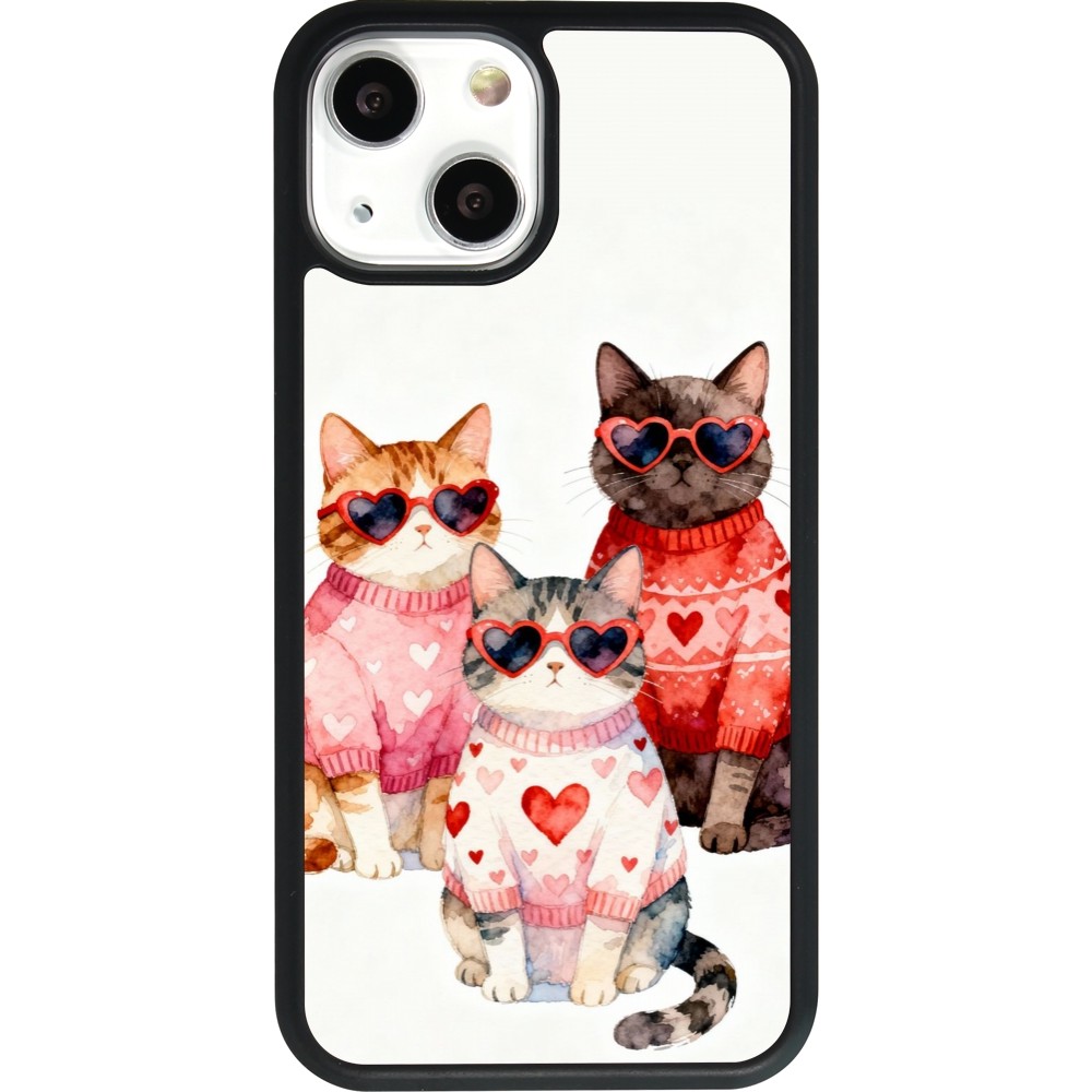 Coque iPhone 13 mini - Silicone rigide noir Saint Valentines Day 26 Cat Love