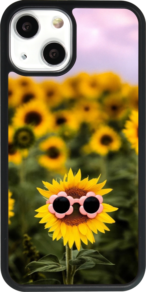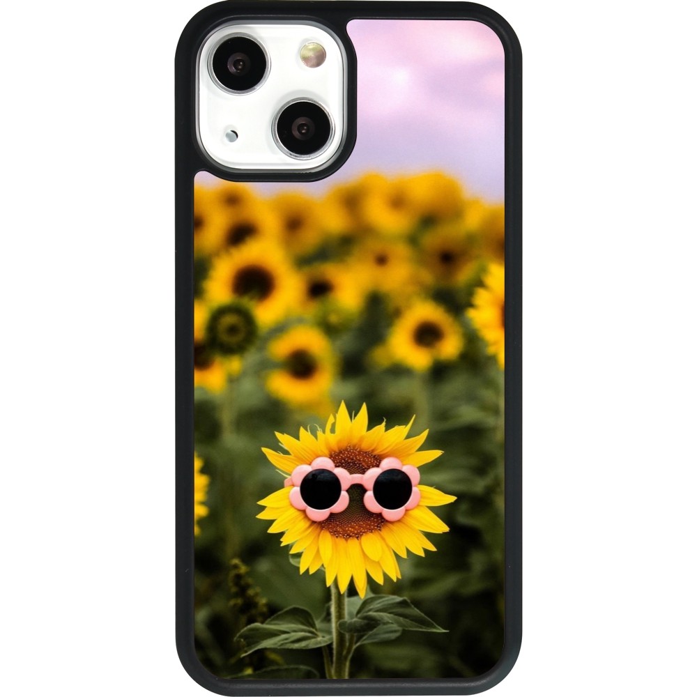 Coque iPhone 13 mini - Silicone rigide noir Sunflower with glasses 2026