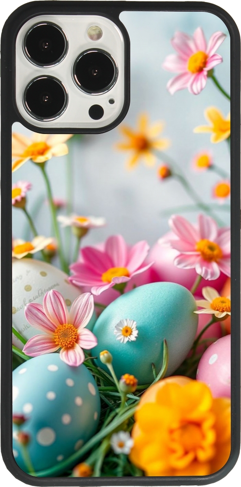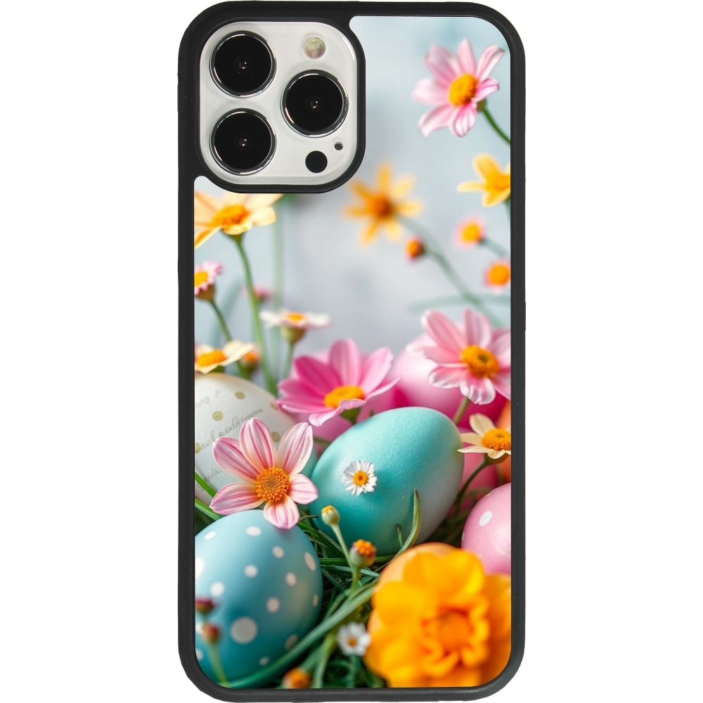 Coque iPhone 13 Pro Max - Silicone rigide noir Easter 2026 Eggs with flowers