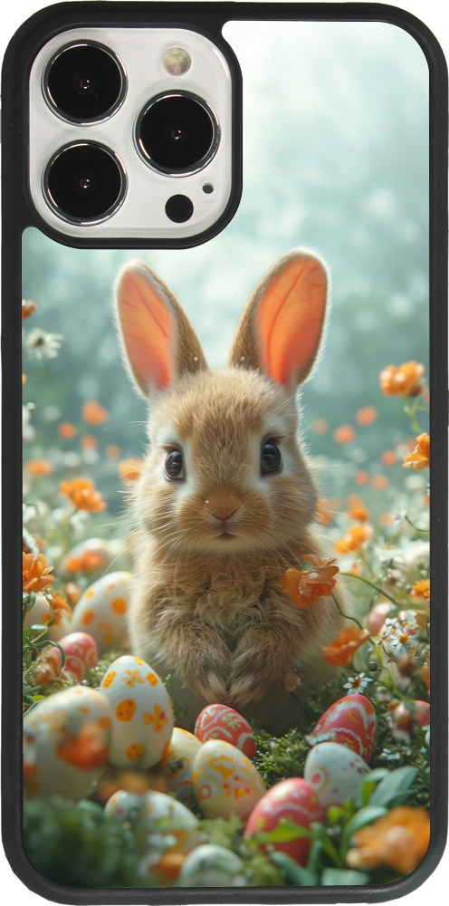 Coque iPhone 13 Pro Max - Silicone rigide noir Easter 2026 Rabbit in the garden