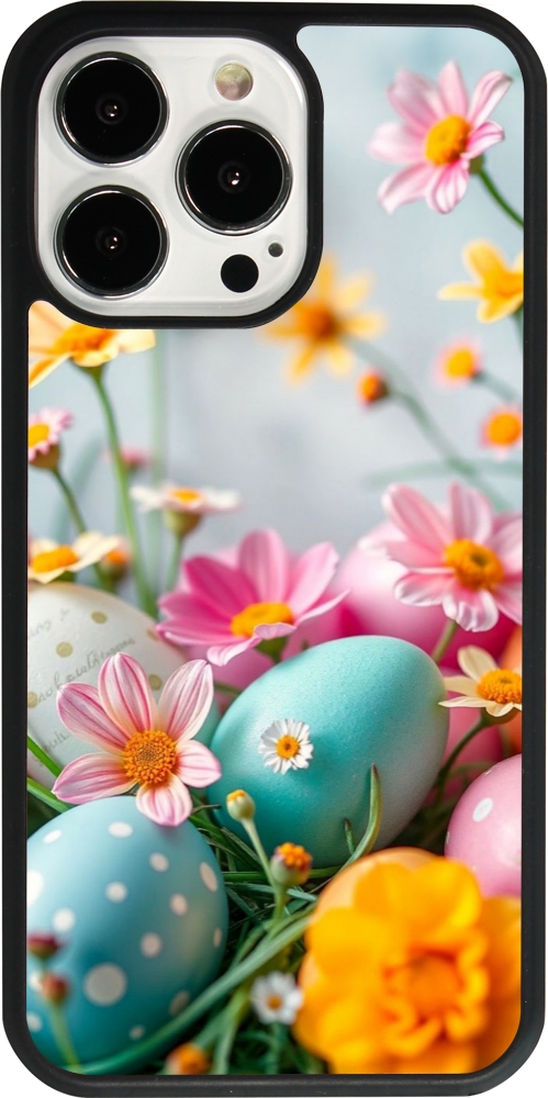 Coque iPhone 13 Pro - Silicone rigide noir Easter 2026 Eggs with flowers