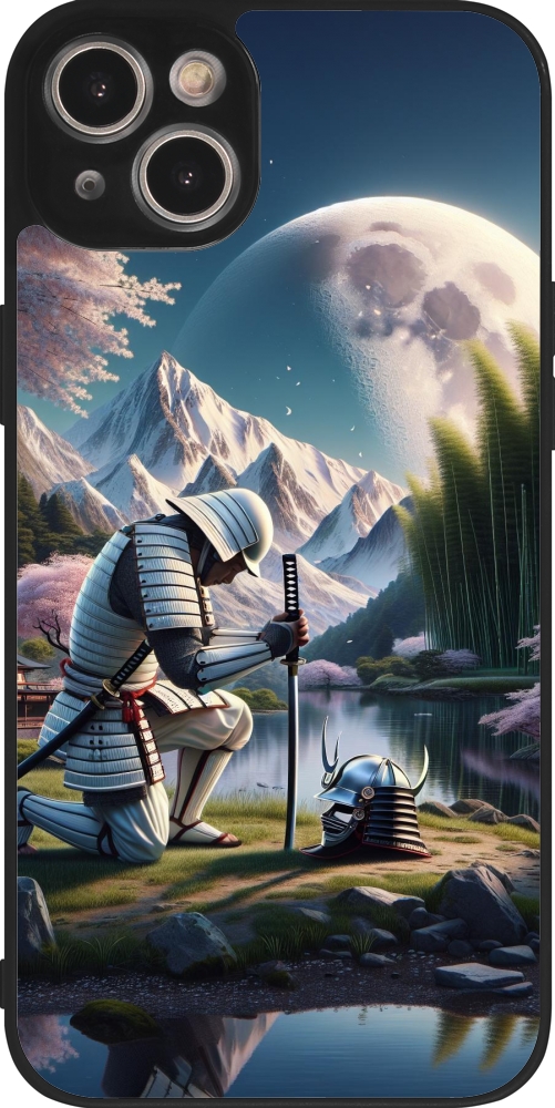 Coque iPhone 14 Plus - Silicone rigide noir Samurai Katana Lune