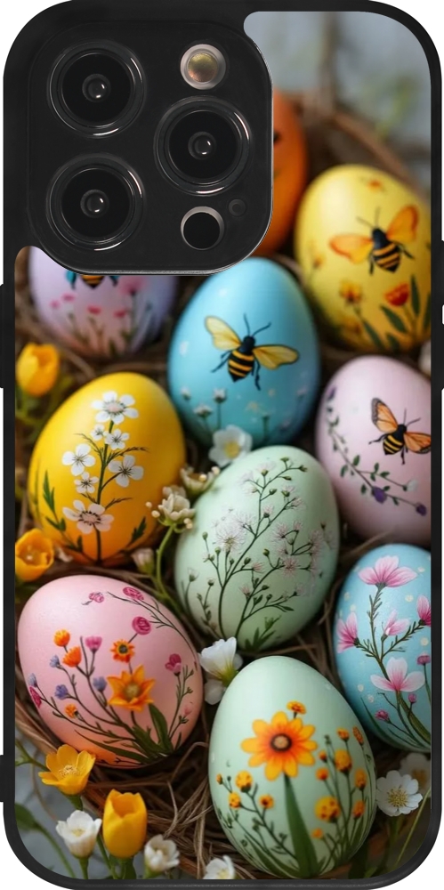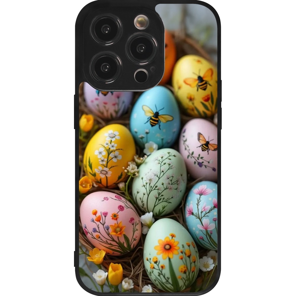 Coque iPhone 14 Pro - Silicone rigide noir Easter 2026 Eggs with bees
