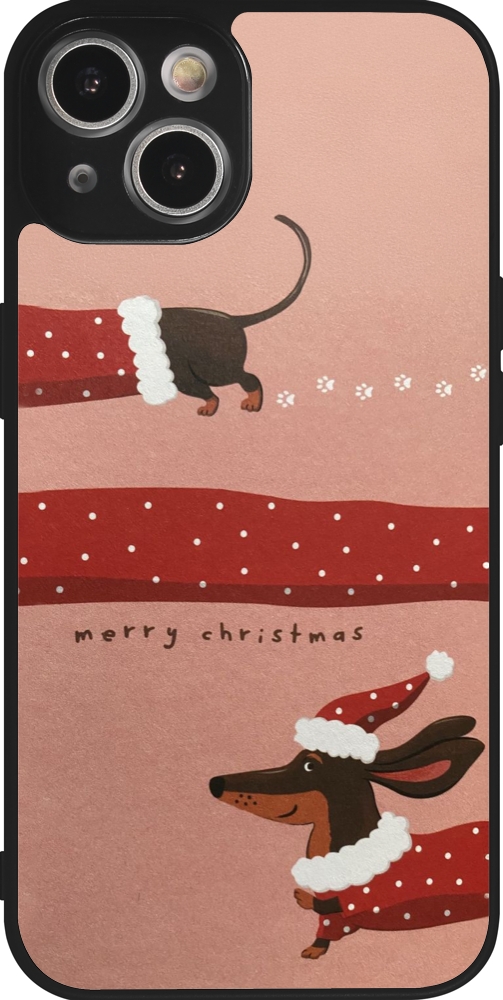 Coque iPhone 14 - Silicone rigide noir Christmas 25 Teckel Merry Xmas