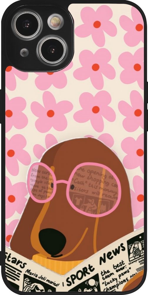 Coque iPhone 14 - Silicone rigide noir Dog with newspaper 2026