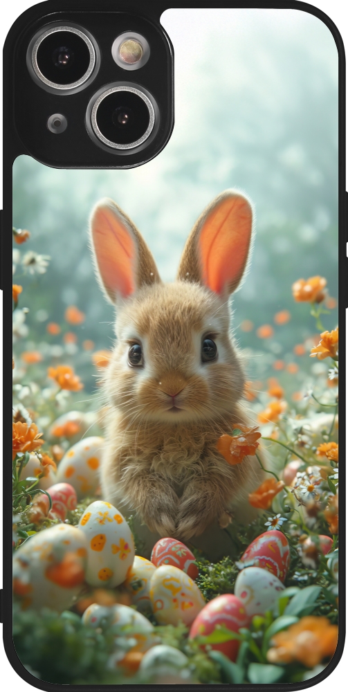 Coque iPhone 14 - Silicone rigide noir Easter 2026 Rabbit in the garden