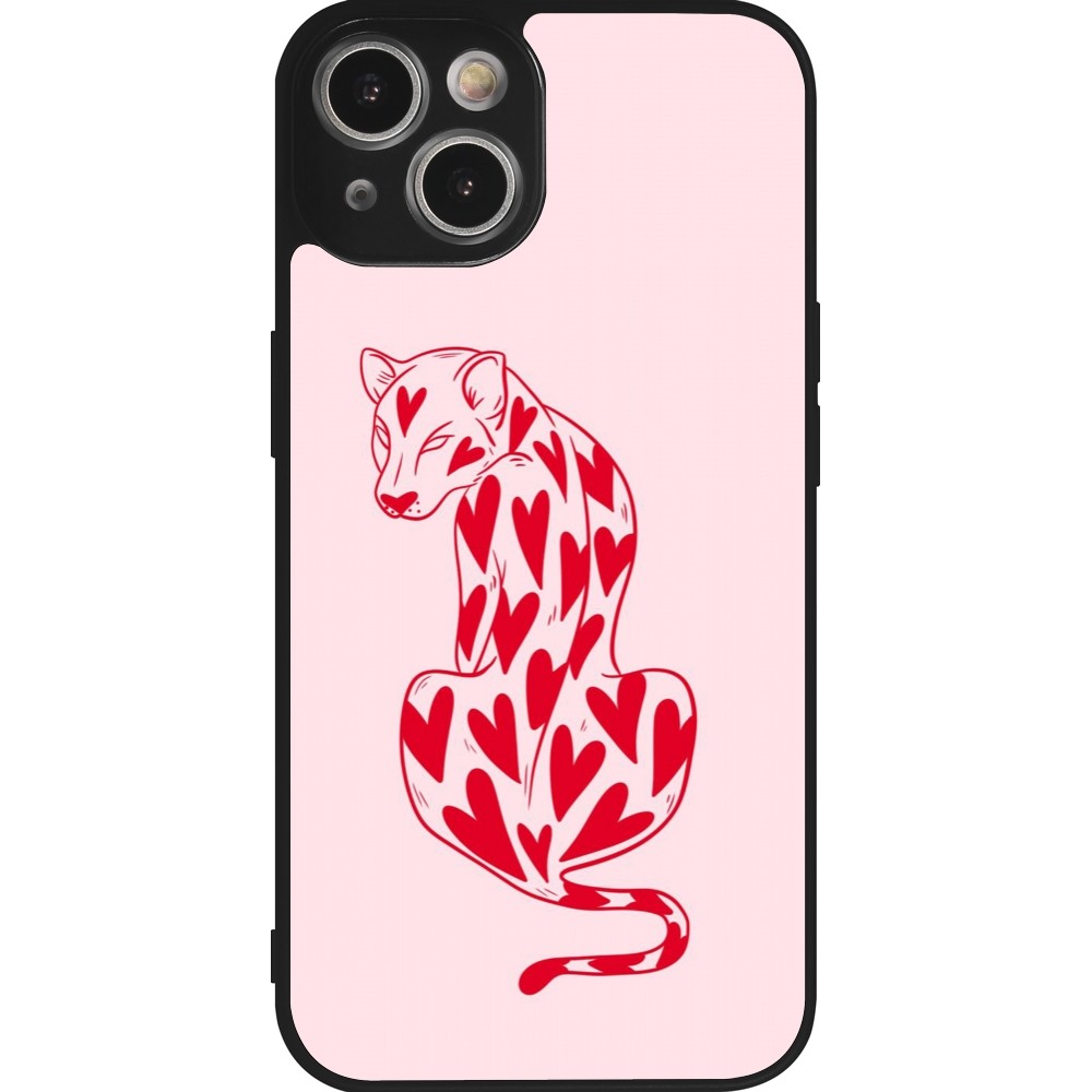 Coque iPhone 14 - Silicone rigide noir Leopard with hearts 2026
