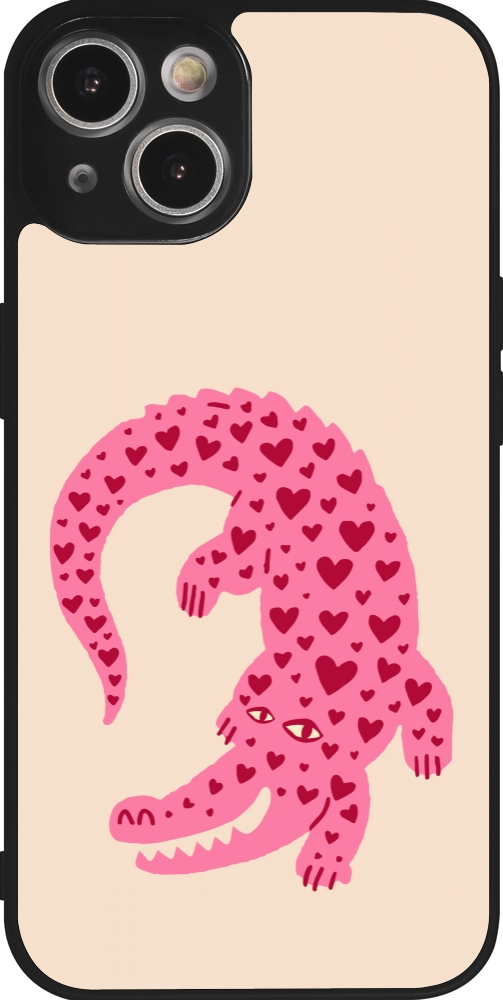 Coque iPhone 14 - Silicone rigide noir Pink crocodile 2026