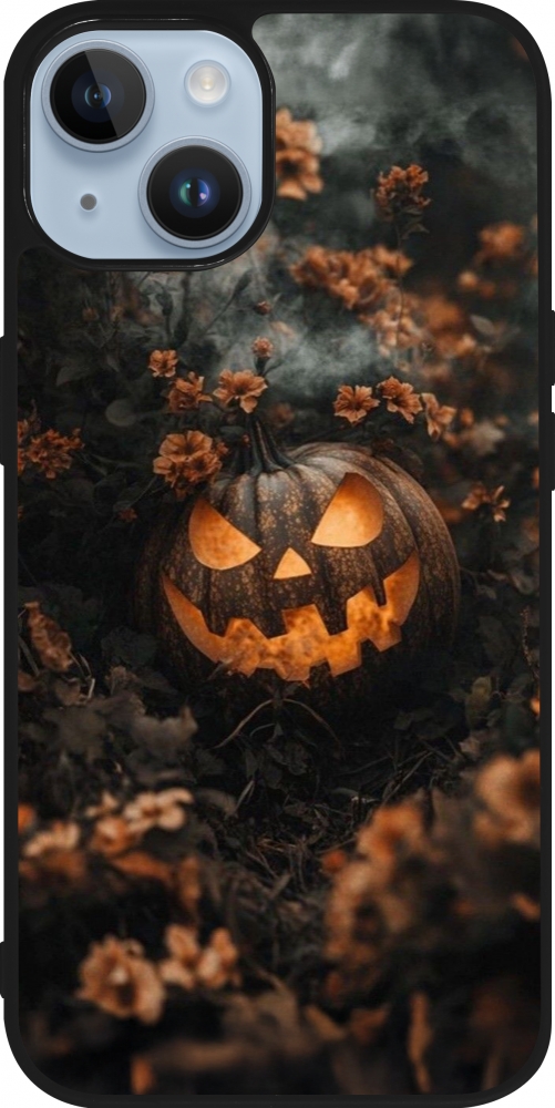 Coque iPhone 15 - Silicone rigide noir Halloween 2025 Pumpkin with flowers
