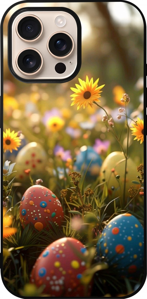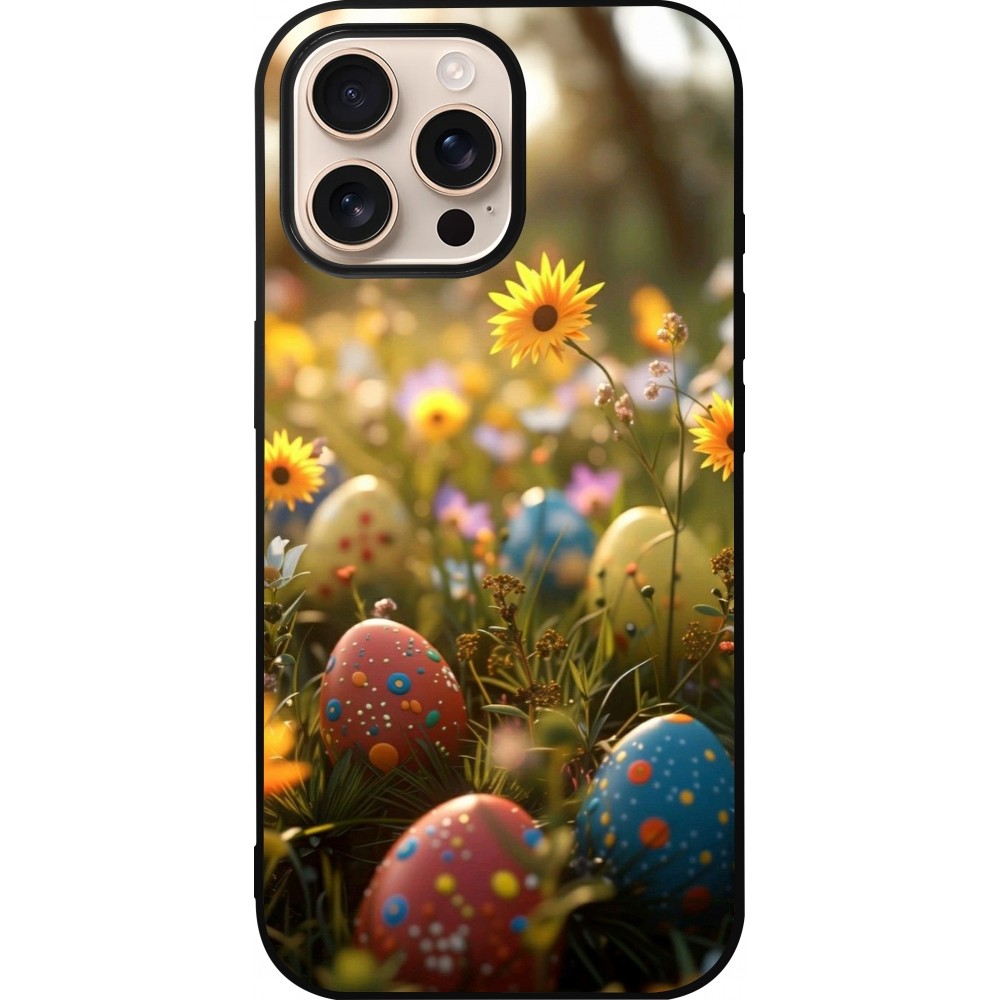 Coque iPhone 16 Pro Max - Silicone rigide noir Easter 2026 Decorated eggs