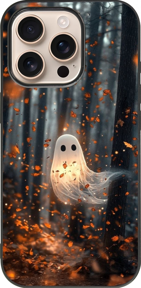Coque iPhone 16 Pro - Silicone rigide noir Halloween 2025 Ghost in the forest