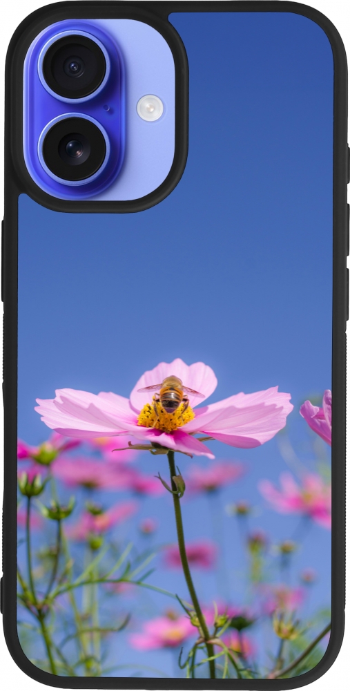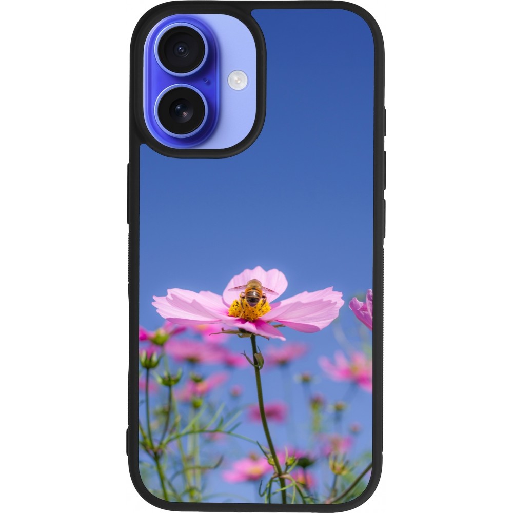 Coque iPhone 16 - Silicone rigide noir Bee on a flower Spring 2026