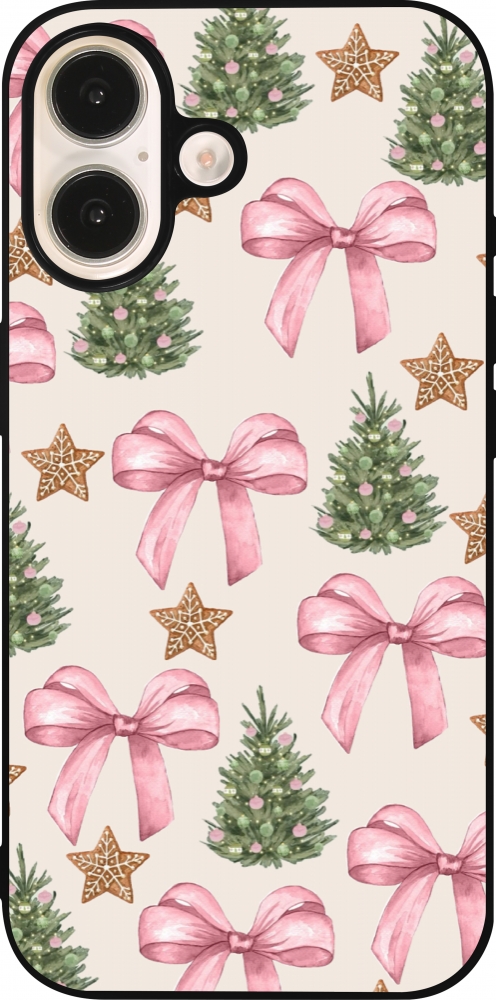 Coque iPhone 16 - Silicone rigide noir Christmas 25 Vintage Ribbons