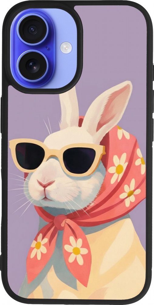 Coque iPhone 16 - Silicone rigide noir Easter 2026 Rabbit with scarf