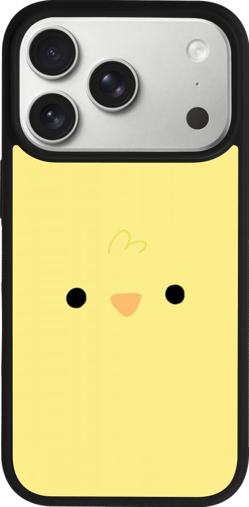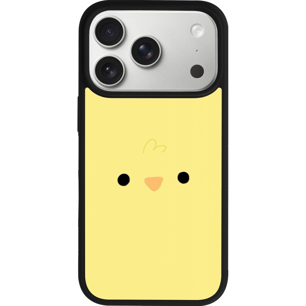 Coque iPhone 17 Pro - Silicone rigide noir Easter 2026 Little chicken