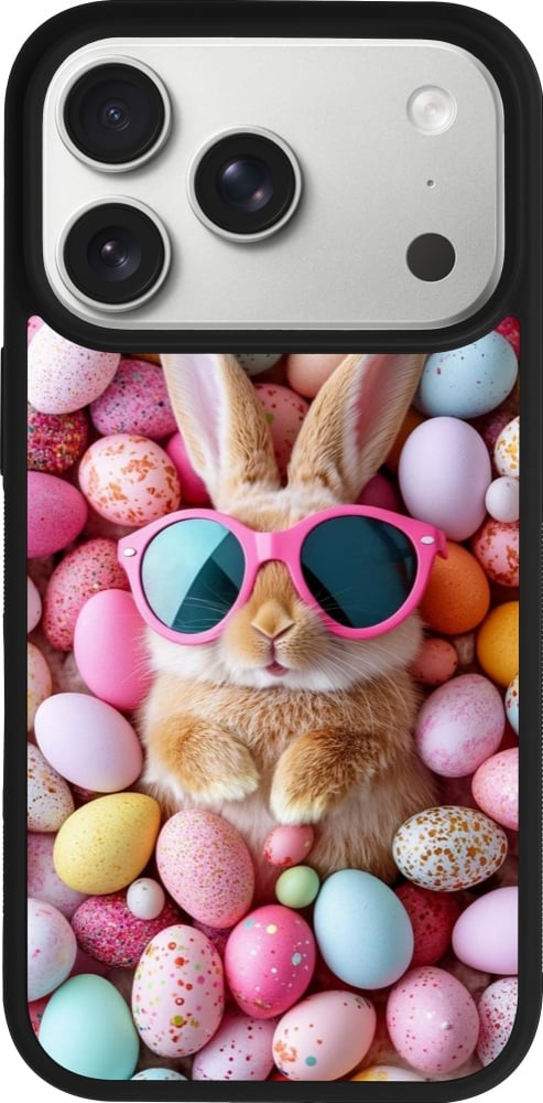 Coque iPhone 17 Pro - Silicone rigide noir Easter 2026 Rabbit fun
