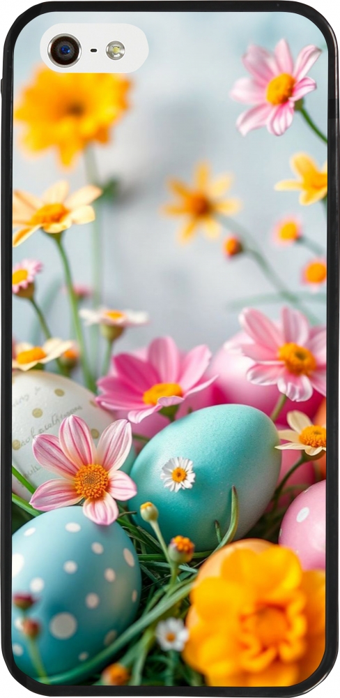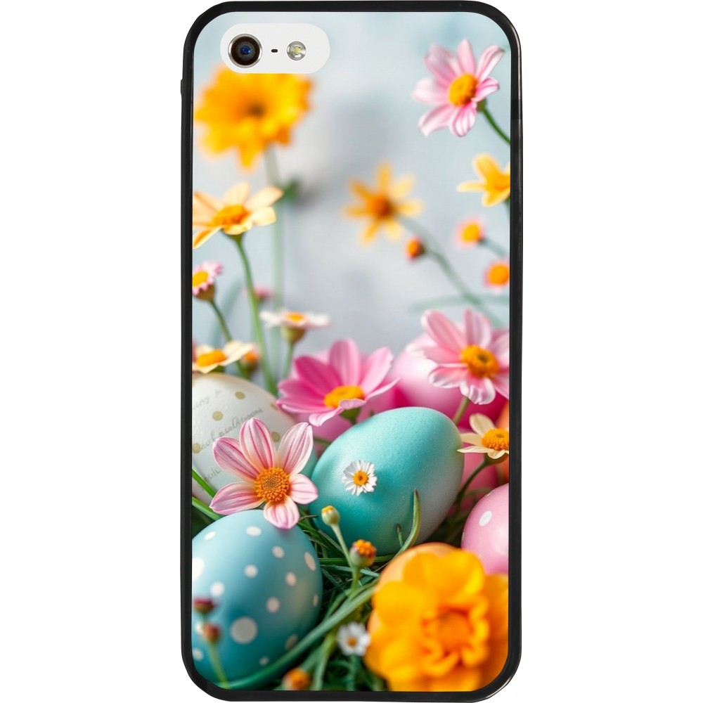 Coque iPhone 5/5s / SE (2016) - Silicone rigide noir Easter 2026 Eggs with flowers