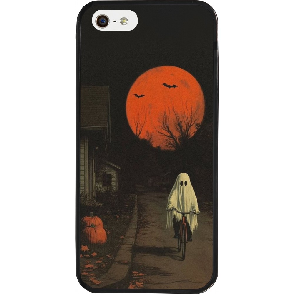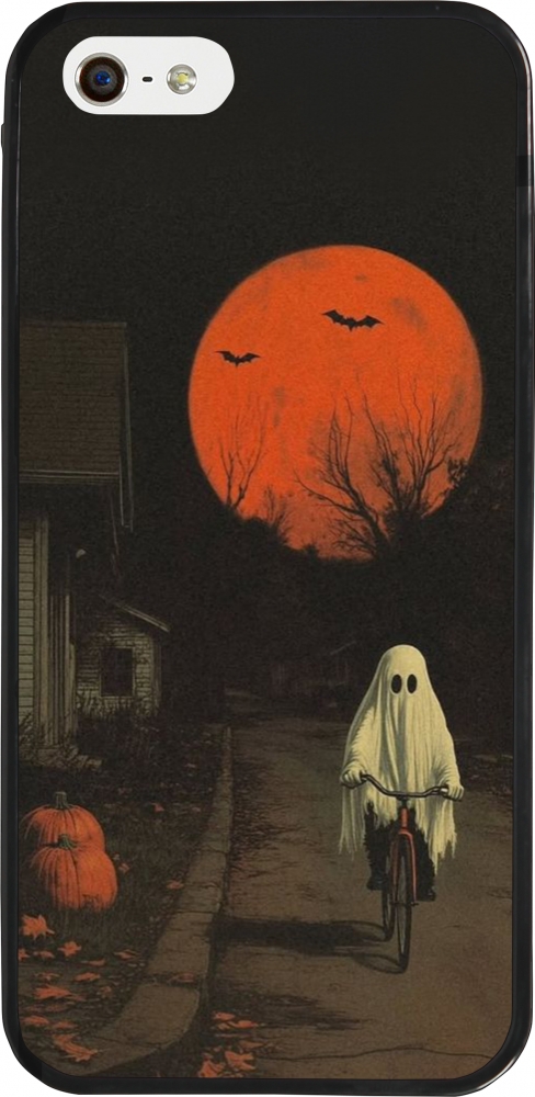 Coque iPhone 5/5s / SE (2016) - Silicone rigide noir Halloween 2025 Ghost on a bicycle