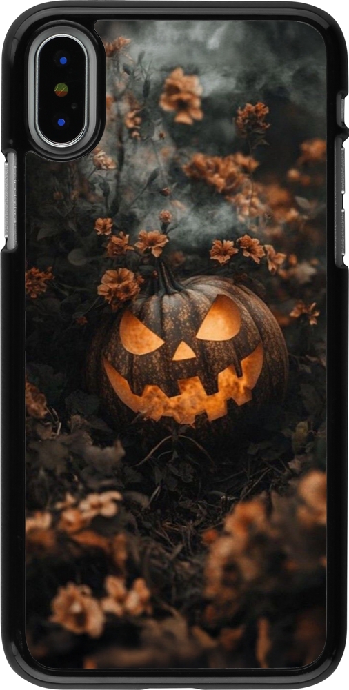 Coque iPhone X / Xs - Halloween 2025 Pumpkin with flowers