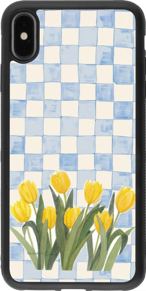 Coque iPhone Xs Max - Silicone rigide noir Blue vichy tulips Spring 2026